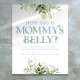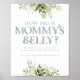 Un jeu amusant pour vos invités à deviner à quel point le ventre de maman est gros. Un panneau de baby shower élégant et amusant, avec une typographie moderne bleu poussiéreux et un joli feuillage botanique. Conçu par Thisisnotme©