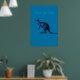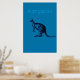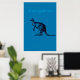 Le Blue Kangaroo Modern Wall Art avec l'image d'un Kangaroo en noir contre un arrière - plan coloré avec le mot "Kangaroo". Très bien dans la décoration moderne des salons.
