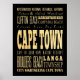 Belle oeuvre de typographie listant les attractions et les célèbres endroits du Cap, Afrique du Sud. Grand souvenir et souvenir !