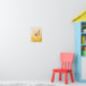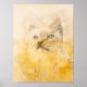 Cette impression est une image délicate d'un chaton dans les tons doux jaune et noir avec de minuscules fleurs le long du bord inférieur.