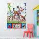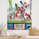 Une affiche médiévale vintage et colorée, avec un chevalier en armure, à cheval et tenant une lance.