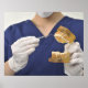 Affiche Le dentiste a expliqué avec un modèle dentaire