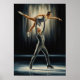 Une peinture à l'huile Art Déco époustouflante représentant un duo de patinage artistique masculin et féminin en costumes argentés chatoyants, leurs formes géométriques entrelacées et stylisées gelées au sommet d'un ascenseur dramatique et sculptées par l'éclairage théâtral de chiaroscuro.