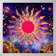 "Feu dansant du Cosmos" Le Soleil. Les tourbillons hypnotiques du soleil et les éruptions d’or donnent l’illusion du mouvement, comme si les flammes solaires étaient vivantes. Un chef-d'oeuvre complexe célébrant l'énergie, la chaleur et l'équilibre céleste avec des couleurs rouge, orange, jaune et bleu.