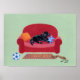 Affiche Le Labrador noir sur l'oeuvre du canapé rose