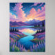 Découvrez la beauté paisible du lac Tekapo avec cette oeuvre d'art enchanteresse. La scène présente les eaux turquoise du lac, encadrées par des collines ondoyantes et des montagnes enneigées au loin.