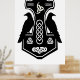 Un marteau noir et blanc de Norse Thor avec des corbeaux et des noeuds celtiques