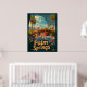 Revivez le glamour du design moderne du milieu du siècle avec cette affiche illustrant un magnifique art déco rétro d'un hôtel rose et orange avec une piscine étincelante, sur fond de ciel bleu vif et de palmiers balançants. Parfait pour envoyer une touche de vibrations Palm Springs à vos amis et à votre famille, ou ajouter une touche nostalgique à votre décor maison.