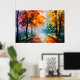 Cette peinture à l'huile texturée captivante capture la beauté radieuse d'un sentier d'automne éclairé par le soleil, où éclatent des oranges vibrantes, des dorures et des rouges profonds de la canopée au-dessus. Les coups de pinceau impressionnants apportent une texture et une profondeur riches à la scène, tandis que le doux éclat de lumière sur le chemin et la douce lueur d'un réverbère solitaire créent une atmosphère de chaleur et d'émerveillement tranquille. Parfait pour ajouter charme saisonnier et élégance tranquille à toutes les chambres.