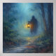 Représentation d'une silhouette sombre et solitaire errant dans une forêt sombre et brumeuse. La figure solitaire et silhouettée au sein d'une forêt dense et brumeuse est peinte dans des tons riches et froids de bleu minuit, de sarcelle profonde et de vert ombré. Le point focal est le rendu de la flamme de la lanterne, qui jette un reflet chaud doré-orange hautement saturé sur le chemin humide et le feuillage environnant. Le grain lourd du style pastel simule brillamment le bruit visuel d'un épais brouillard, donnant à la scène une profondeur tangible et mystérieuse.