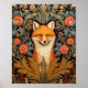 Affiche Le renard et les fleurs rouges style Art nouveau