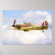 Un Hawker Hurricane revient en sécurité après un fiançailles à la bataille d'Angleterre, dans le ciel au-dessus de Kent. La photographie est traitée pour imiter la peinture.