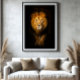 Le regard perçant du lion éveille le respect et le pouvoir. Naissant des ténèbres, sa présence imposante symbolise le courage, le leadership et la majesté sauvage indomptée.