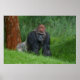 Dans cette image passionnante, un puissant gorille argenté se dresse dans une herbe verdoyante, son regard fixé devant avec un arbre solitaire dans l'arrière - plan.