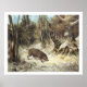 Affiche Le sanglier dans la neige, signé Courbet (faux)