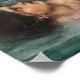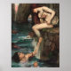 Cette reproduction d'une oeuvre de 1900 sur toile de John William Waterhouse présente une sirène avec de longs cheveux auburn tenant une lyre, commençant par un marin condamné.