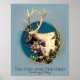 Une peinture d'un wapiti à bulles avec un wapiti à l'intérieur d'un cercle bleu encadré par une branche d'arbre recouverte de feuilles verts. Copyright ©2022 Kimberly J Tilley. zazzle.com/store/kimberlyjt