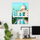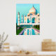 Poster sur une illustration du Taj Mahal, réfléchi dans une piscine, sous un ciel bleu d'aube aquamarine