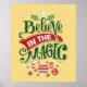 Une affiche avec une jolie illustration. Texte dit Croire à la magie en lettres fantaisistes. Décoré de boules de noël.