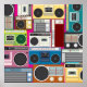 Lecteur de cassette rétro coloré et radio plat illustration de conception sur arrière - plan rose étouffant