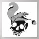 Une escalade d'écureuil volant gris au-dessus d'un crâne noir incliné. Ce rongeur à l'allure moche a ses griffes tendues vers une glande. La bouche est surtout remplie de dents pointues.