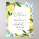 Accueillez vos invités à votre réception de mariage avec ce beau poster, présentant une bordure mosaïque bleue avec de la verdure aquarelle et des citrons. Ajoutez le nom de la mariée et la date de la réception en utilisant les champs fournis.