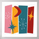 Faites une déclaration dans vos murs avec cette affiche audacieuse de l'ère atomique du milieu du siècle. Avec ses rectangles, ses étoiles et ses boomerang roses, oranges, bleues et rouges, il ne manquera pas d’avoir quelques "wows" !