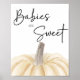 L'enseigne **Baby shower Citrouille "Babies Are Sweet"** est une décoration délicieuse pour un baby shower à thème automne. Il présente généralement un design citrouille mignon et l'expression "Babies sont douces", ce qui en fait une façon charmante de célébrer l'arrivée prochaine d'un nouveau bébé. Ce panneau peut être utilisé pour rehausser le thème général de la douche et peut être placé près de la table cadeau, de la table dessert, ou dans le cadre du décor général.