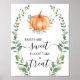 Les bébés baby showers sont sucrés s'il vous plaît prendre un poster traiteur dispose d'un citrouille aquarelle et chute verdure feuille d'or couronne.