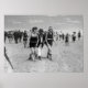 Une demi-douzaine de femmes se font droguer de la plage par la police pour violation des lois sur la décence des maillots de bain. A l'avant, un chef de police a deux "criminels" par les bras qui les emmènent à la corbeille.