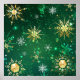 Arrière - plan de Noël vert avec des flocons de neige en or et bijoux verts. Des flocons dorés. Noël.