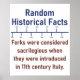 L'histoire est fascinante. Révélez votre fascination pour ce fait historique : Les fourchettes étaient considérées comme sacrilège lorsqu'elles ont été introduites au XIe siècle. Idéal pour les amateurs de futilités et d'histoire.