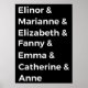 Elinor et Marianne et Elizabeth et Fanny, Emma et Catherine et Anne.