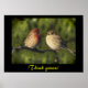 Cette affiche de Jour des terres comporte une paire de doigts de maison perchés sur une branche. Le mâle a un plumage rouge sur la tête et la poitrine. La femelle est bronzée et brune avec des rayures. Elles se distinguent magnifiquement par rapport à l'arrière - plan vert lumineux. Le texte dit : Pense au vert. Il peut être customisé ou supprimé.