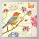 © Daphne Brissonnet / Pomme sauvage. Un oiseau coloré perché sur une branche. Il y a aussi des fleurs et des papillons sur l'image.