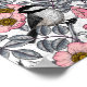 Motif vectoriel dessiné à la main avec des oiseaux chiches à caillebotte noire sur un buisson rose sauvage