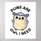 Puns Are Owl I Need Funny Animal Pun dispose d'une chouette mignonne qui n'a besoin que de puns. Un cadeau de jeu de mots parfait pour la famille et les amis qui aiment les puns de choux animaux mignons.