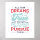 Affiche Les rêves peuvent devenir vrai Rouge Bleu Lettres