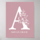 Affiche Lettre A Monogramme Floral Nom Nurserie Moderne