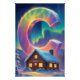 Apportez la magie calme du ciel nocturne arctique dans votre espace avec ce poster Lettre C Aurore. Une lettre C lumineuse s'élève au-dessus d'une forêt enneigée, illuminée par des vagues fluides de Lumières du Nord dans des nuances éclatantes de turquoise, d'émeraude et de violet. L'aurore scintille dans le ciel, éclairant doucement la neige en dessous et mettant en valeur une cabane paisible dans la neige hivernale à la base du monogramme.