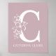 Affiche Lettre C Monogramme Floral Nom Nurserie Moderne