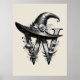 Affiche Lettre Casquette sorcière noire W personnalisée in