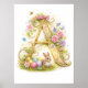Affiche de lettre de nounou avec un motif floral doré printanier, parfaite pour décorer une chambre de bébé douce et personnalisée.