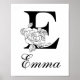 Affiche Lettre E Floral Moderne Noir Monogram Nursery