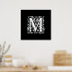 Affiche Lettre élégante M Blanc sur Monogramme noir