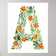 Affiche Lettre florale A personnalisée avec fleurs orange