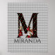 Whimsical Wonderland décoré sur le thème des murs avec Alice vintage et la Reine des Coeurs illustrations de couleurs avec une grande lettre / initiale M avec une carte noire/or/rouge suites remplir motif sur un arrière - plan arlequin gris vintage. Personnaliser davantage avec du texte de nom personnalisable