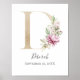 Affiche LETTRE MONOGRAPHIQUE D Pink Blanc Floral OR PUR
