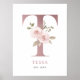Affiche Lettre T Monogramme Aquarelle Rose Florals Nursery