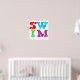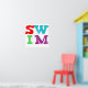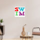 Le mot SWIM en grandes lettres colorées. Grand cadeau pour les nageurs de tous âges.
